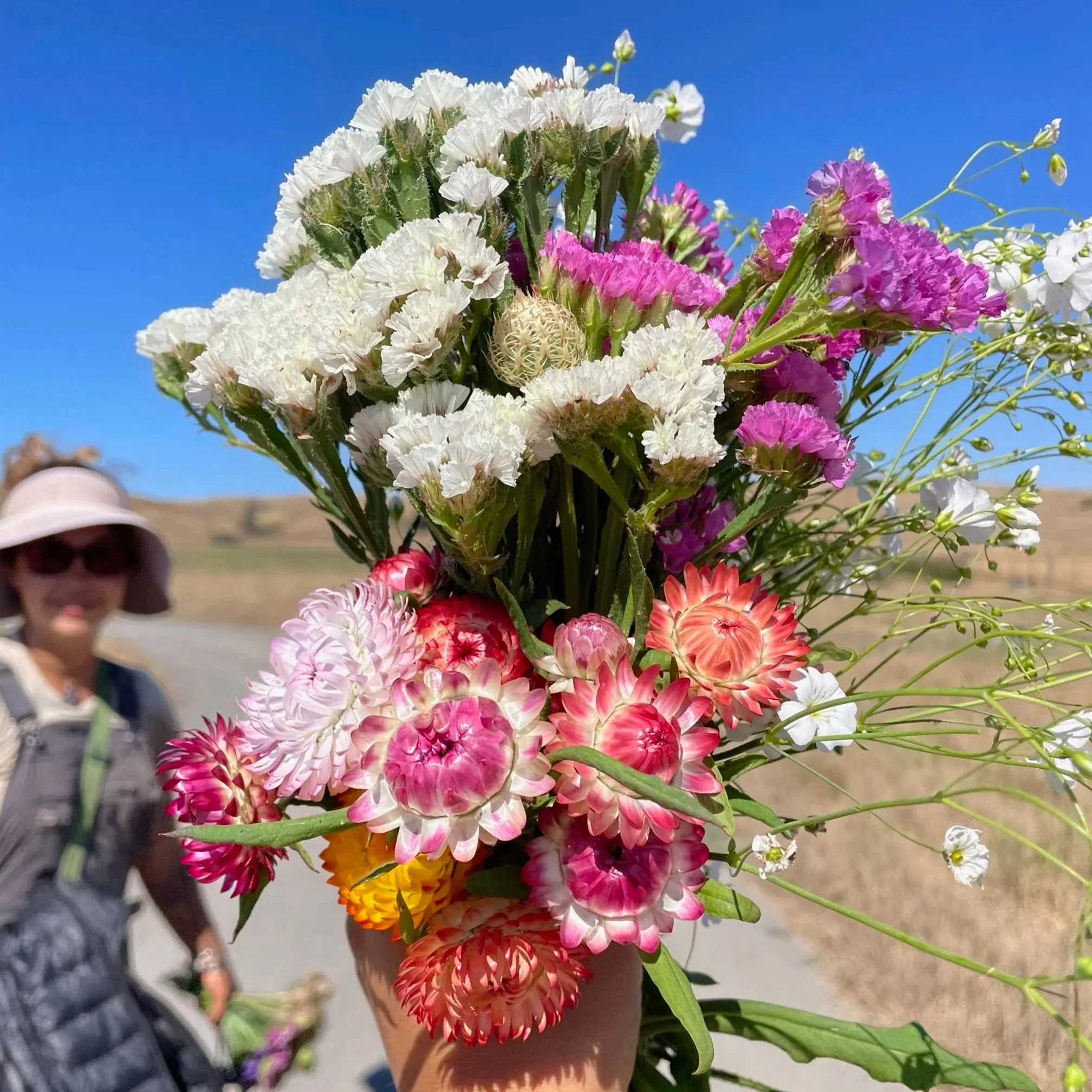 Pick your own flowers and herbs, cherry tomatoes, padron and shishito peppers, and ground cherries